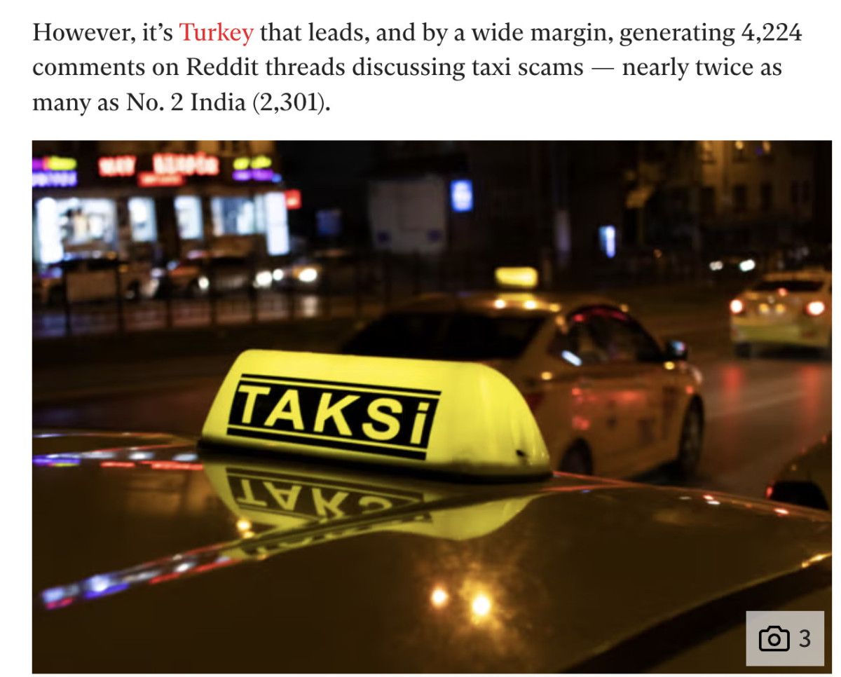 Reddit’te yer alan 450 gönderi ve 30 binden fazla yorum üzerinden yapılan inceleme, taksi dolandırıcılıklarının en çok konuşulduğu ülkelerin başında Türkiye'nin olduğunu gösterdi.
