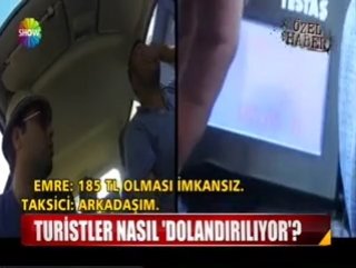 Yoğun bir şekilde turist alan İstanbul'da taksi problemi gün geçtikçe büyüyor. Taksilerden mağdur olanlar ise genellikle turistler oluyor. Show Tv muhabiri Emre Saygı gelen bir ihbar üzerine bu durumu araştırdı.