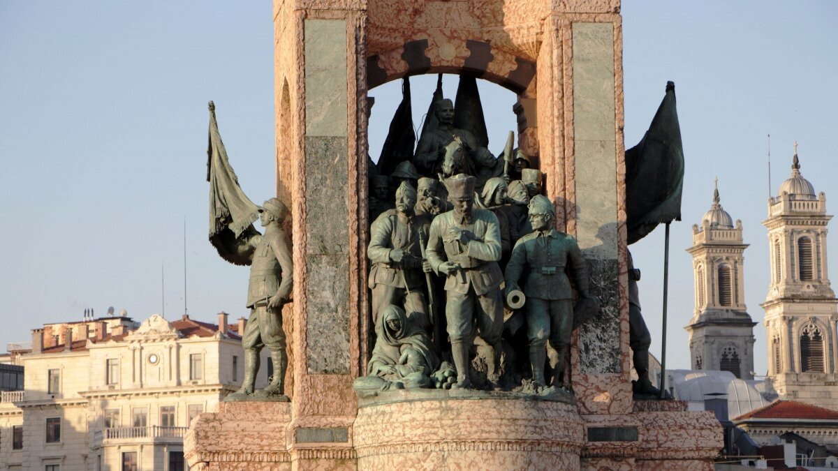 İstanbul'un simgelerinden birisi olan Atatürk ve silah arkadaşlarının yer aldığı, milli mücadele ve Türkiye'nin modern yüzünü simgeleyen heykelde ayrıca 2 sancaktar bulunuyor.