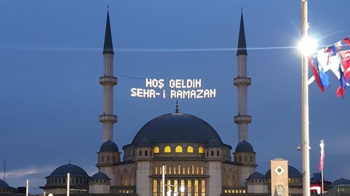 TAKSİM CAMİİ'NE RAMAZAN MAHYASI ASILDI