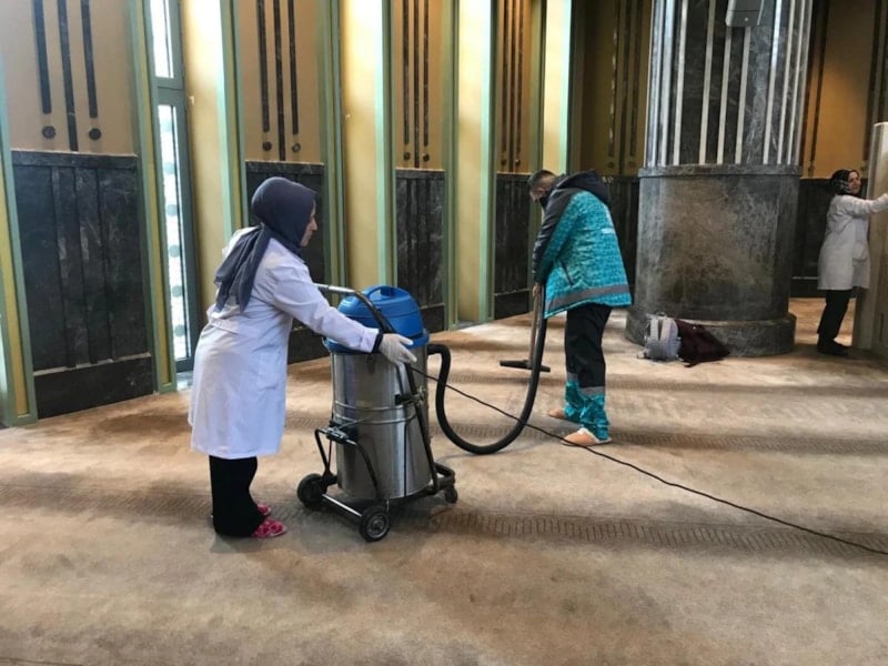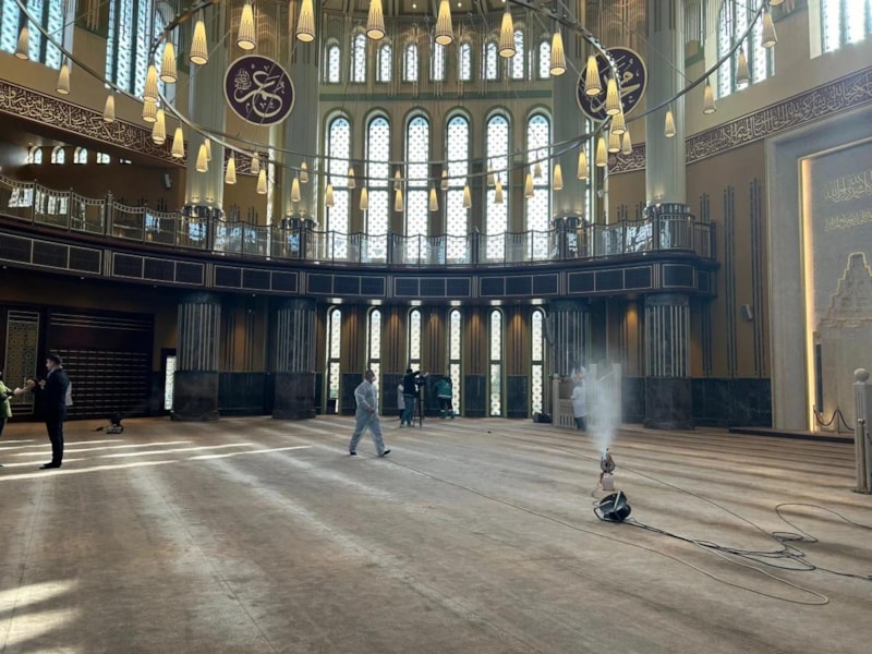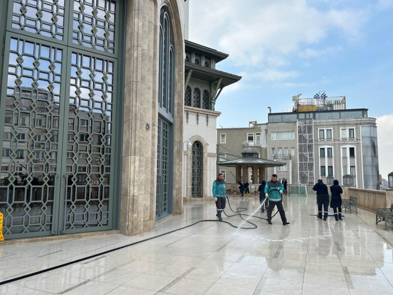Ramazan ayı itibarıyla bu çalışmalarımızı biraz daha sıkılaştırıp, devam ettireceğiz. Genel anlamda yapmış olduğumuz çalışmalarda cami içerisinde detaylı çalışmalarımız var. Dokunulan, dokunulmayan her noktada ekip arkadaşlarımızın hijyen çalışması var. Ramazan ayı dolayısıyla kullanmış olduğumuz malzemelerde biraz değişiklik yaptık. Tüm camilerimizde gül suyu ve gül esansı yıkama ve temizlik çalışmalarımız olacak. Yoğun olan camilerimizden bir tanesi Taksim Camimiz. Konumu itibarıyla çok fazla ziyaretçisi olan bir cami. Ama Beyoğlu içerisinde yine böyle yoğun camilerimiz var. Doğal olarak teravihlerde yoğun geçecek. Yoğun olan camilerimizde teravihten hemen önce gül suyuyla yıkama çalışmalarımız Ramazan boyunca devam edecek.