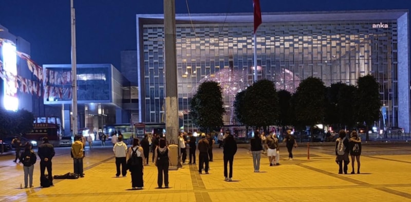 Akşam saatlerinde Taksim Meydanı'nda bir araya gelen grup, yüzlerini Atatürk Kültür Merkezi'ne (AKM) dönerek 'Duran Adam' eylemi gerçekleştirdi.
