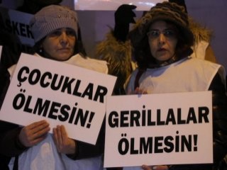 Taksim'de bir araya gelen gruptakiler, "Gerillalar ölmesin" yazılı dövizler açarak Güneydoğu'da yapılan terör operasyonlarının durması gerektiğini savundu.