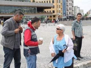 Taksim'de yaşlı teyzeyle polis arasındaki komik diyalog
