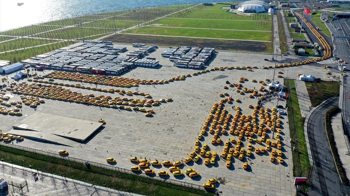 Taksiciler, sabah saatlerinden itibaren taksimetrelerin güncellendiği Yenikapı’daki etkinlik alanına akın etti.