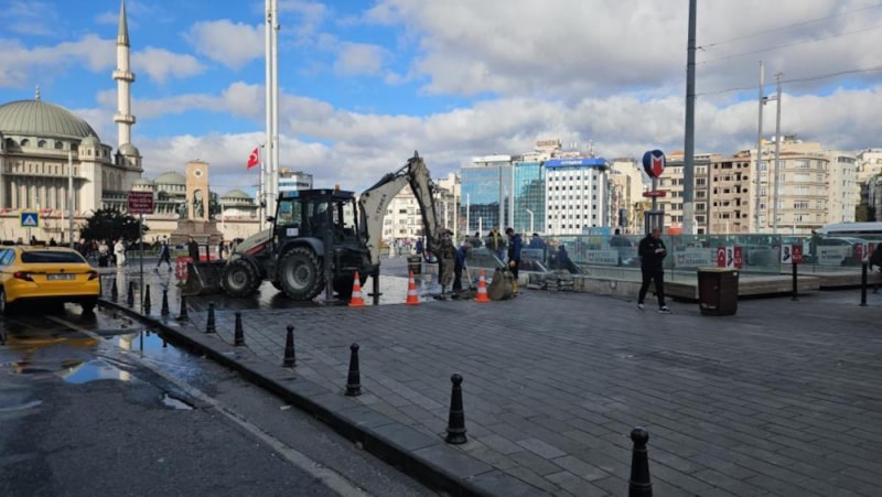 İstanbul Büyükşehir Belediyesi'ne (İBB) bağlı İstanbul Su ve Kanalizasyon İdaresi (İSKİ) ekipleri tarafından Taksim Meydanı'nda yapılan çalışmalar esnasında iş makinesi, su borusunu patlattı.