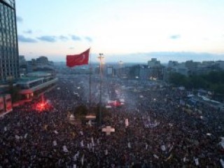 Taksim Gezi Parkı'ndaki eylemlerin 12. gününde Taksim Meydan'ında dev buluşma. Eyleme başından beri destek veren çeşitli taraftar grupları en büyük buluşmasını gerçekleştirdi. Beşiktaş, Galatasaray ve Fenerbahçe taraftarları Taksim'e yürüdü.