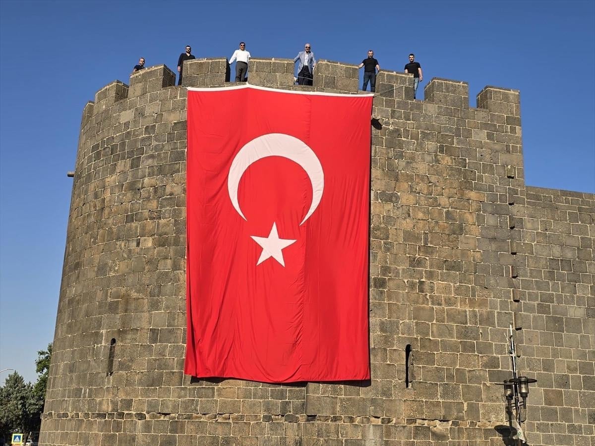 AK Parti Diyarbakır İl Başkanlığınca da 'Terörsüz Türkiye'ye destek amacıyla tarihi Diyarbakır Surları'na Türk bayrağı asıldı.