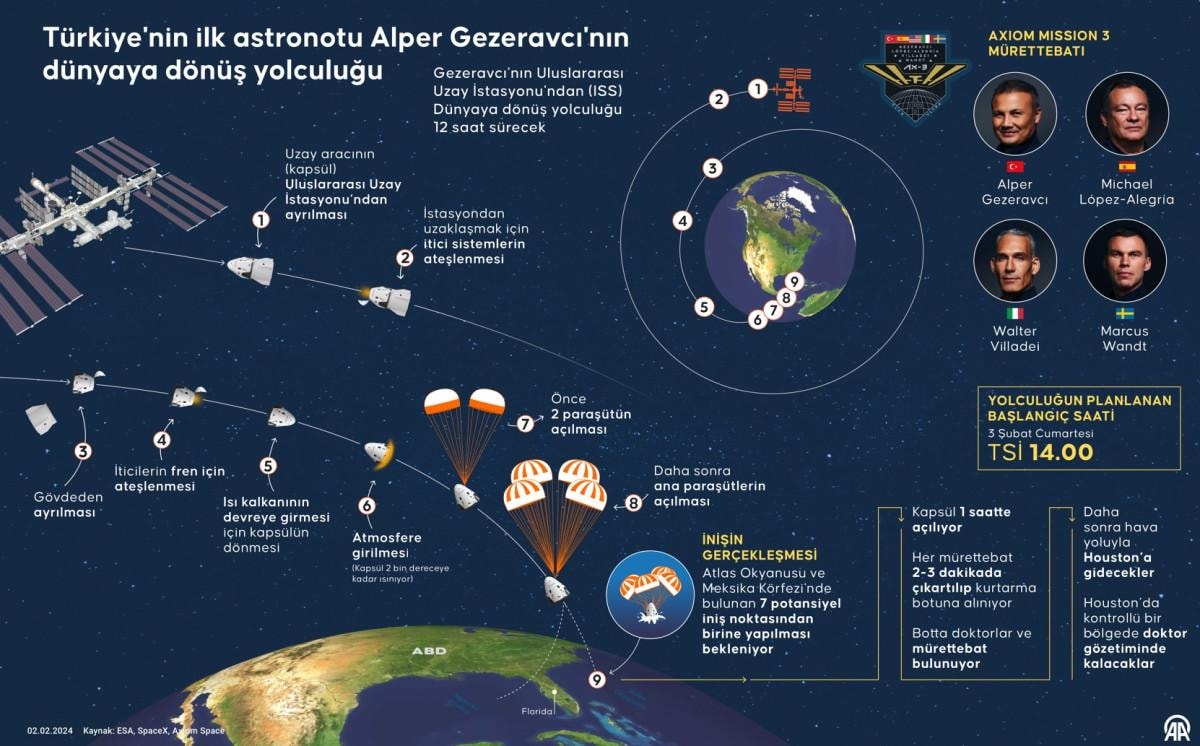 Gezeravcı ve ekibinin yarın Türkiye saatiyle 14.00'te ISS'den ayrılması bekleniyor.