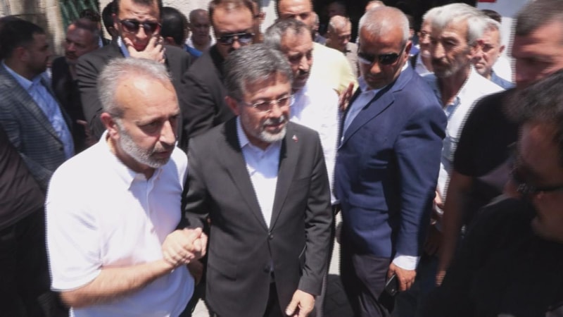 Bakan Yumaklı ve aile üyeleri, cenaze namazı öncesinde cami avlusunda taziyeleri kabul etti.