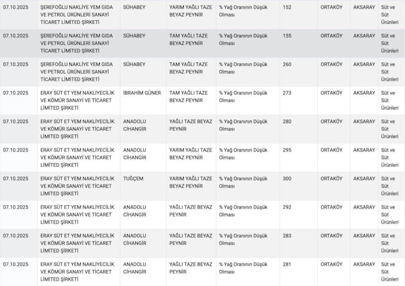 Yapılan son testlerle birlikte 22 peynir markasında düşük yağ oranı tespit edildi.