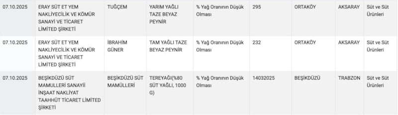 Bakanlık, gıda sahteciliğine karşı yürüttüğü denetimler sonucunda 7 Ekim 2025 tarihli son taklit veya tağşiş gıdalar listesini yayımladı