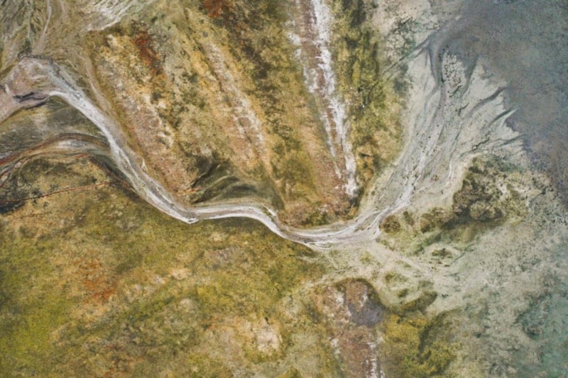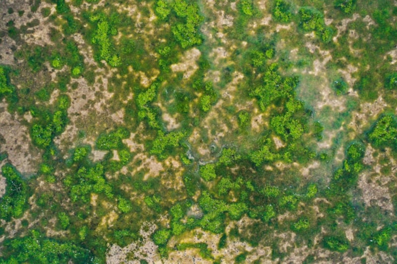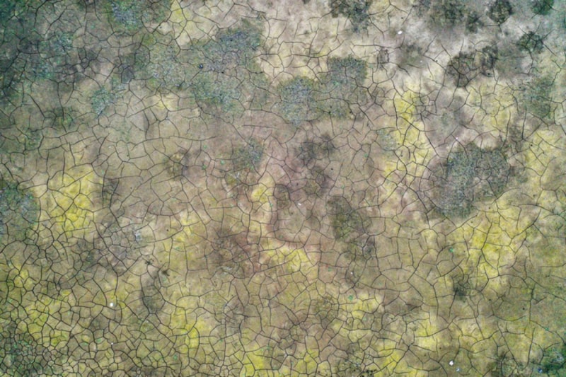 Havadan görüntülenen Büyükçekmece Gölü'nde daha önce dolu olan bölgelerden suların çekildiği, kuraklık nedeniyle toprağın kuruyup çatladığı görüldü.