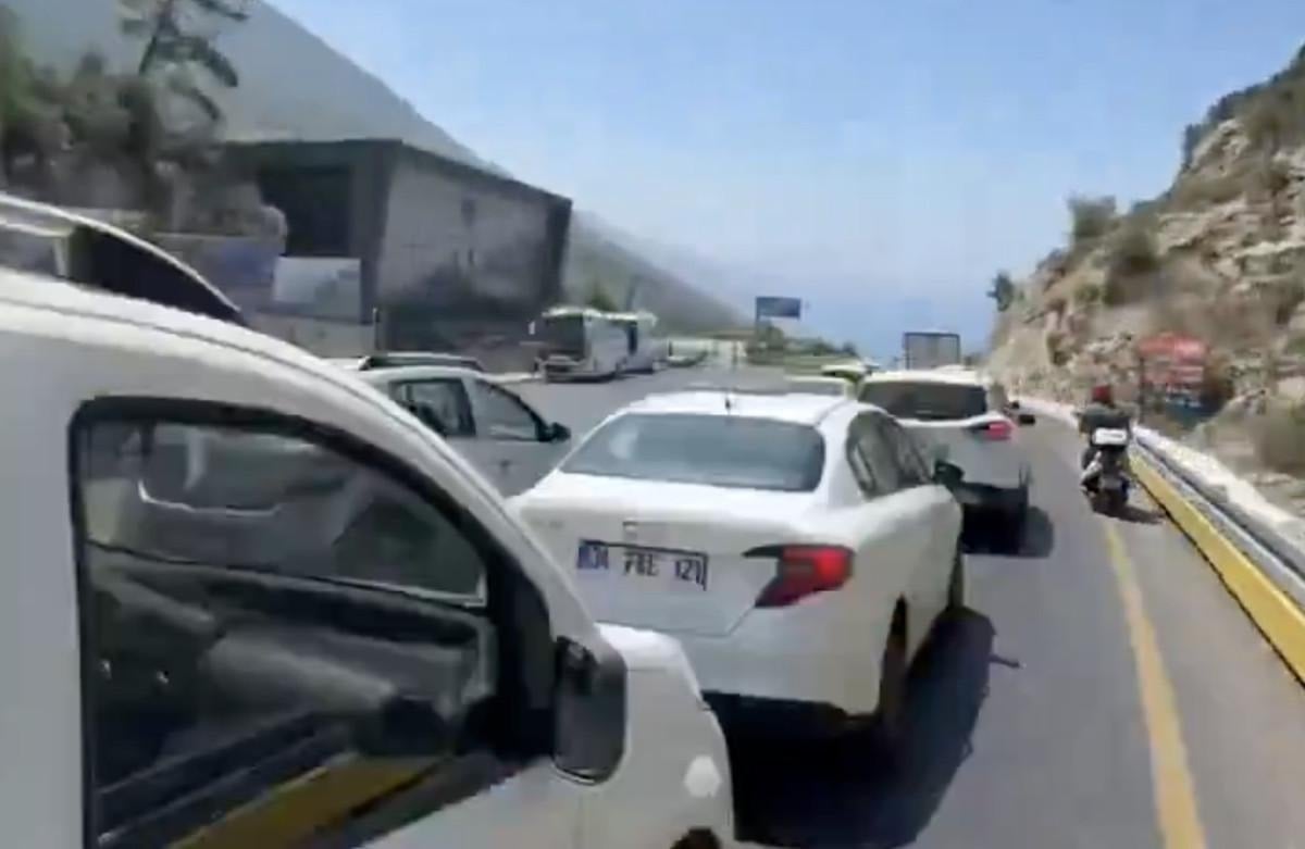 Bir motosiklet sürücüsünün kayda aldığı o anlar, araç kuyruklarını ve Ölüdeniz'in yaz aylarında nasıl bir kalabalığa maruz kaldığını gösteriyor.