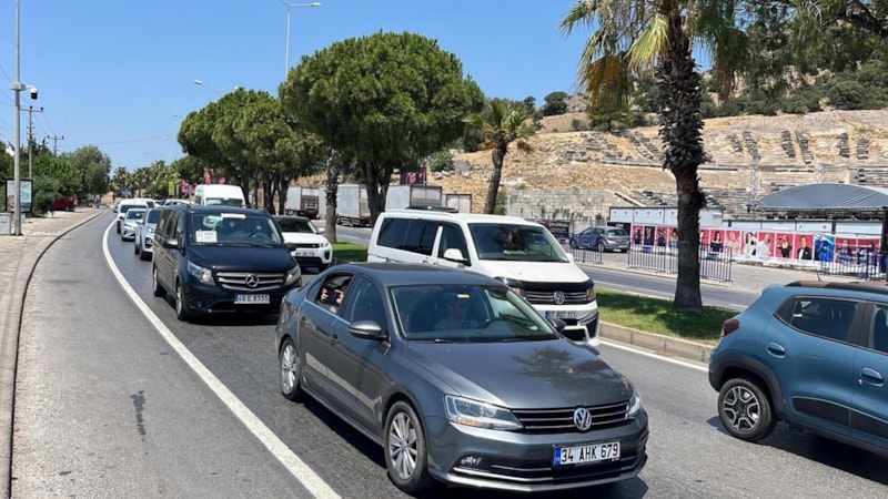 Bayram tatilinin 7’nci gününde tatilciler, son 2 günde yaşanabilecek trafik yoğunluğuna takılmamak için ilçeden ayrılmaya devam ediyor. Kent çıkışında yoğun araç kuyrukları oluşurken, Gümbet-Yokuşbaşı istikametinde de trafikte yoğunluk yaşandı.