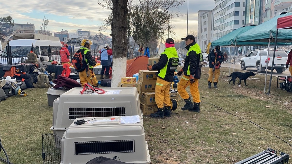 Kurtarma faaliyetlerinde gerekli araç gereç ve arama köpekleriyle gelen ekip, çalışmalara hemen başladı.