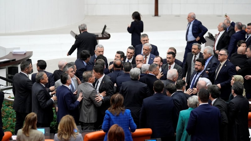 TBMM'de oturum sırasında CHP ile AK Partili milletvekilleri arasında 'Ekrem İmamoğlu' tartışması yaşanırken, CHP Grup Başkanvekili Ali Mahir Başarır, AK Partililere kolonya şişesi fırlattı.
