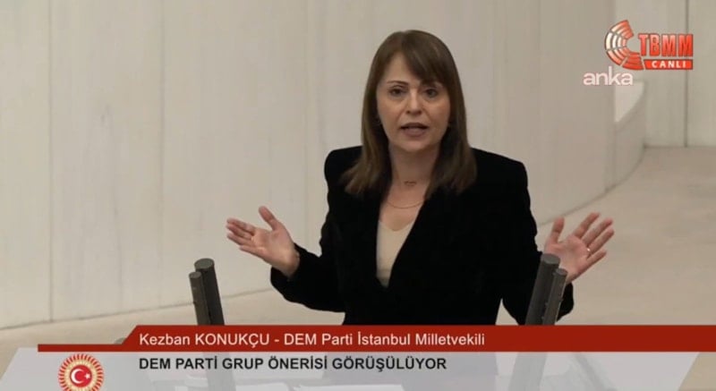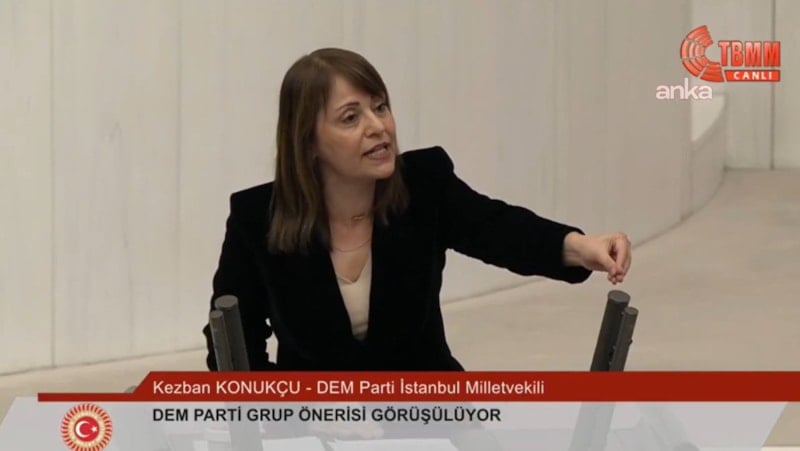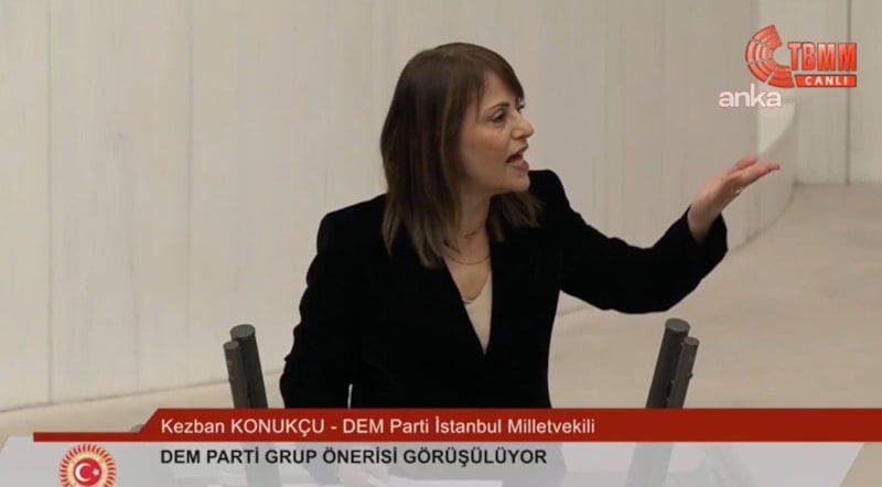 Konuşması sırasında AK Partili milletvekilleriyle tartışan DEM Partili vekil Kezban Konukcu "Bana 'terbiyesiz' diyemezsin. Ben senin bildiğin kadınlara da benzemem" dedi.