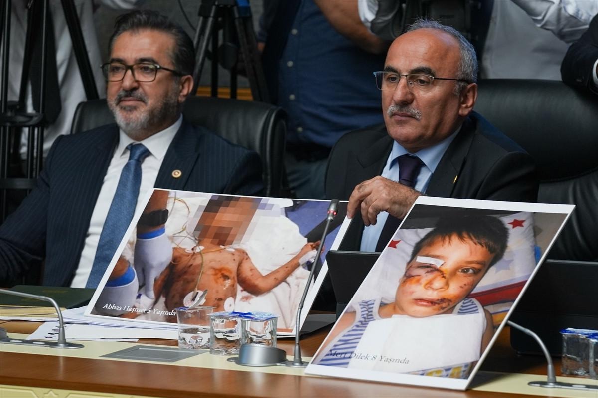Görüşmeler sırasında komisyon salonundaki AK Parti milletvekilleri, sahipsiz köpeklerin saldırıları sonucu yaralanan ve hayatını kaybeden çocukların fotoğraflarını gösterdi.