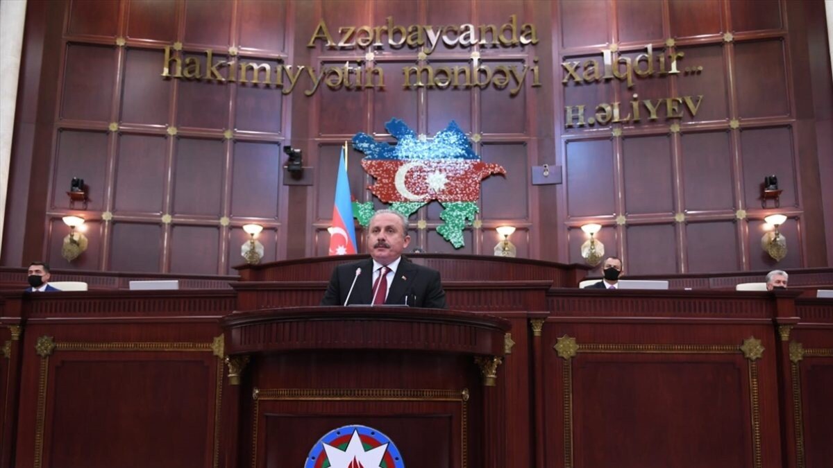 Azerbaycan Milli Meclisi'nde, Azerbaycan milletvekillerine seslenen Mustafa Şentop, şehit olan Azerbaycanlılara rahmet dileyerek başladığı açıklamalarına, Türkiye ile Azerbaycan'ın ikili ilişkilerini değerlendirerek devam etti.