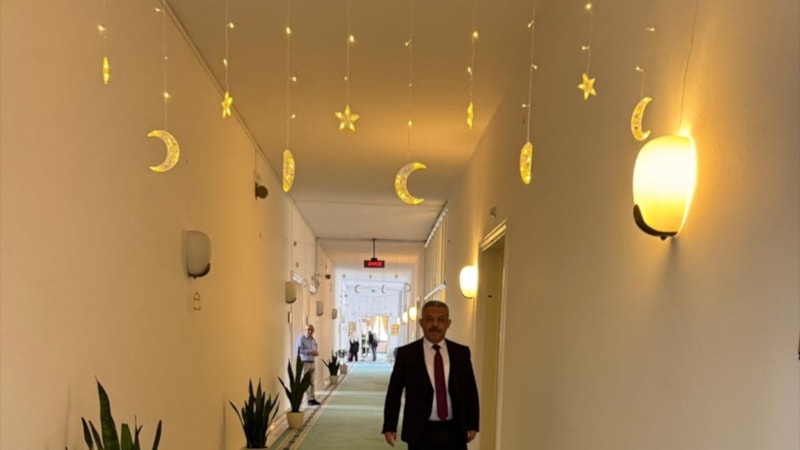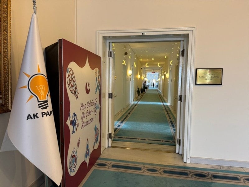 Buna göre AK Parti Grup Başkanlığı'nın bulunduğu koridor, Ramazan'a uygun biçimde süslendi.