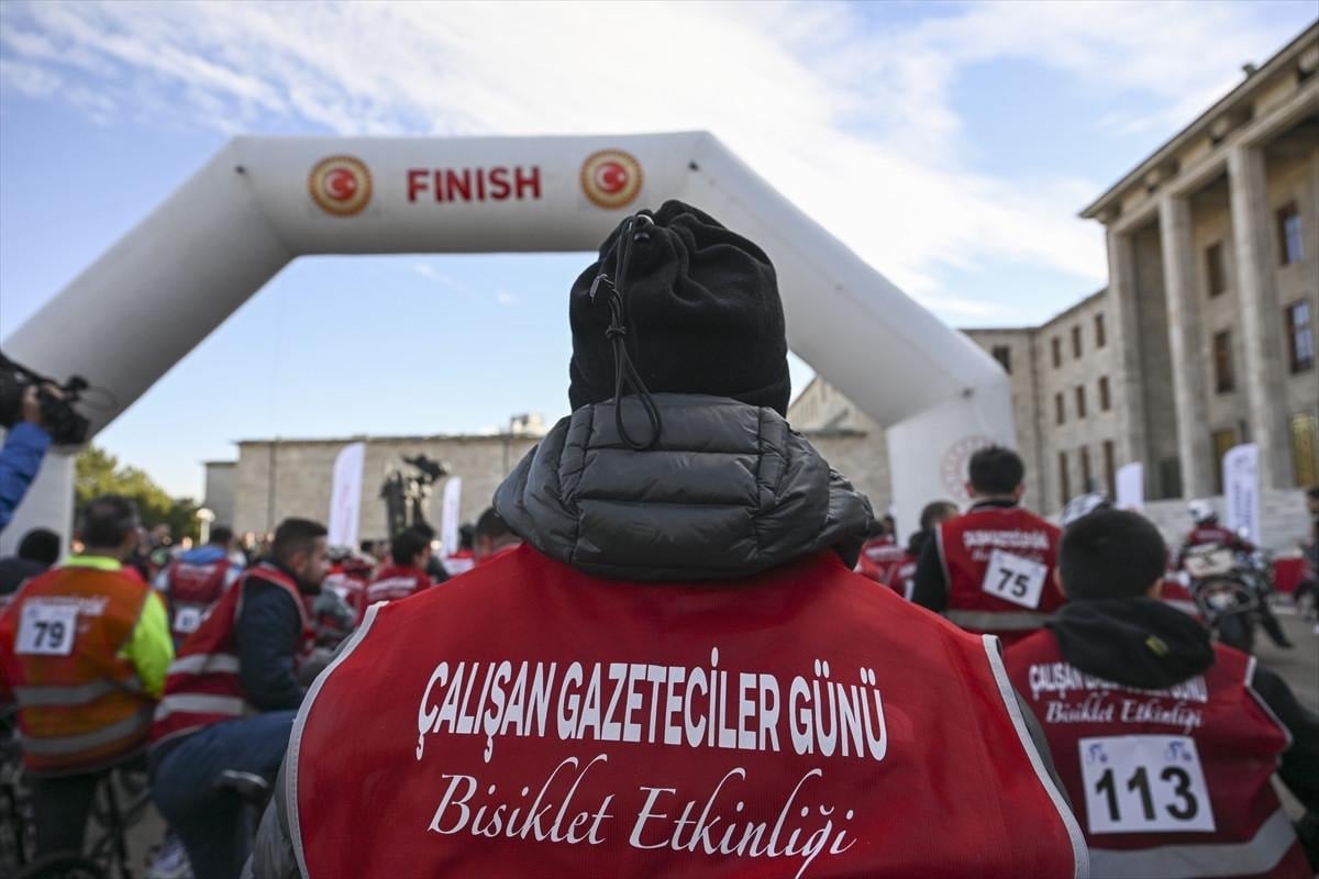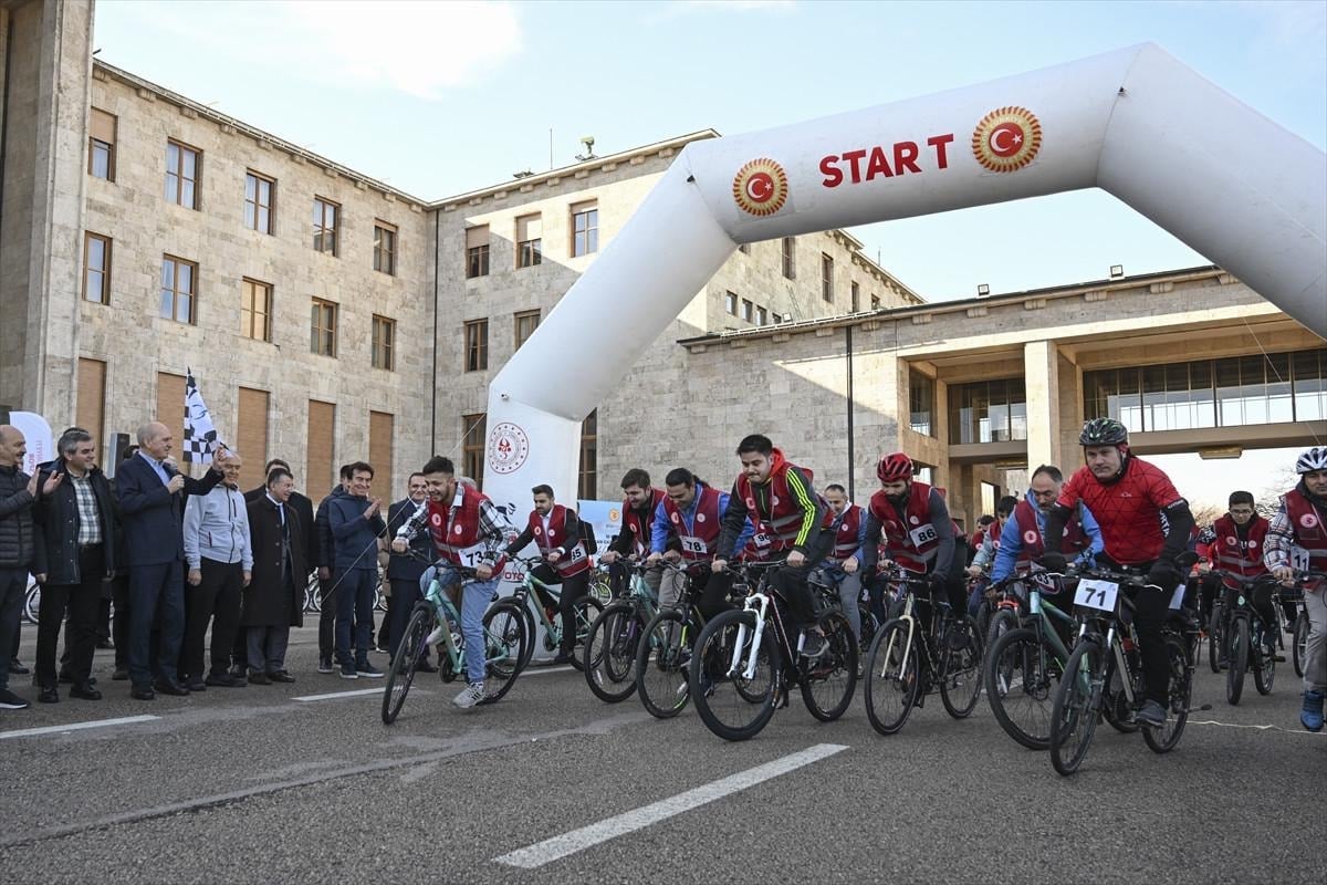 TBMM Şeref Merdivenlerinde Dünya Çalışa Gazeteciler günü Bisiklet yarışı yapıldı.