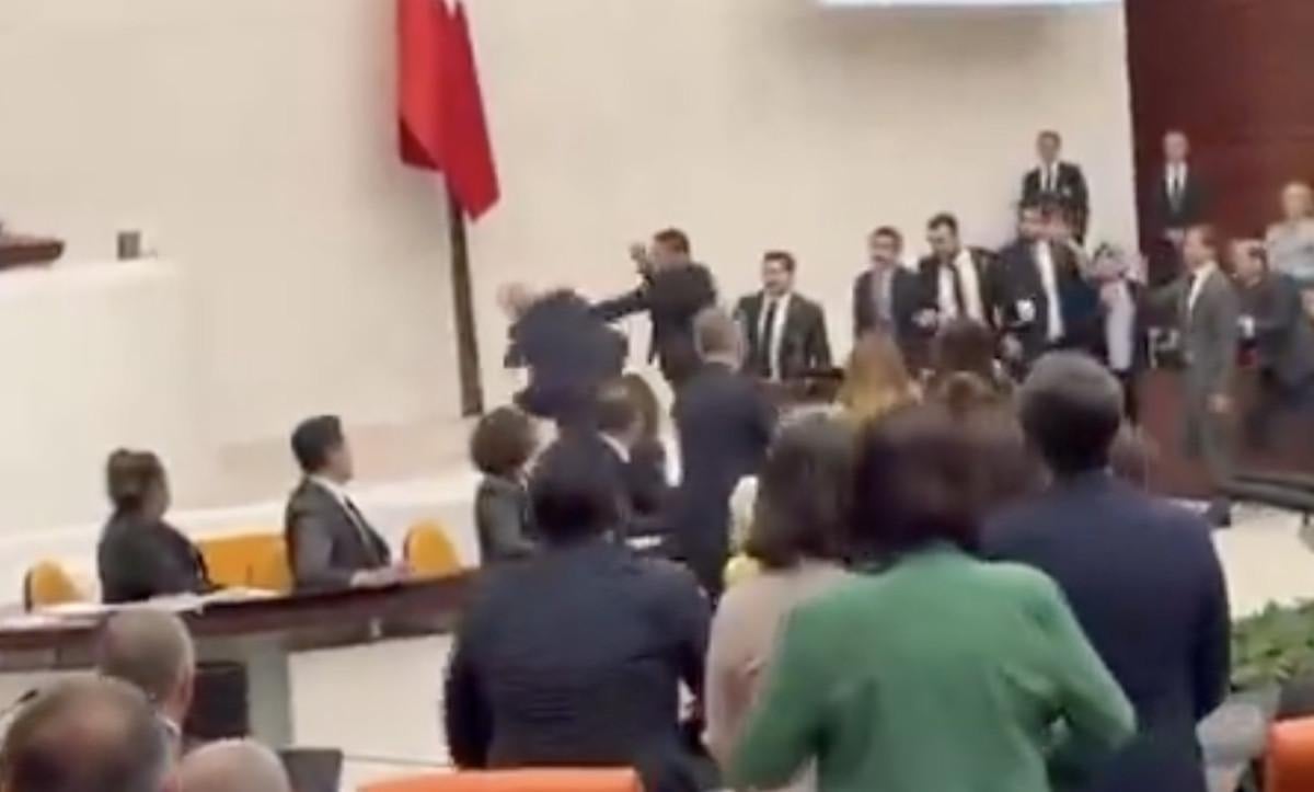 Verilen aranın ardından milletvekilleri kürsünün önünde birbirine girdi.