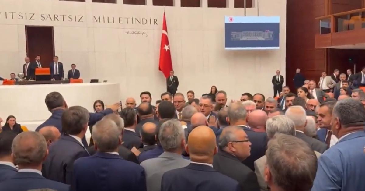 Ancak Yenişehirlioğlu’nun kürsüden inmesinin ardından milletvekilleri arasında arbede yaşandı.