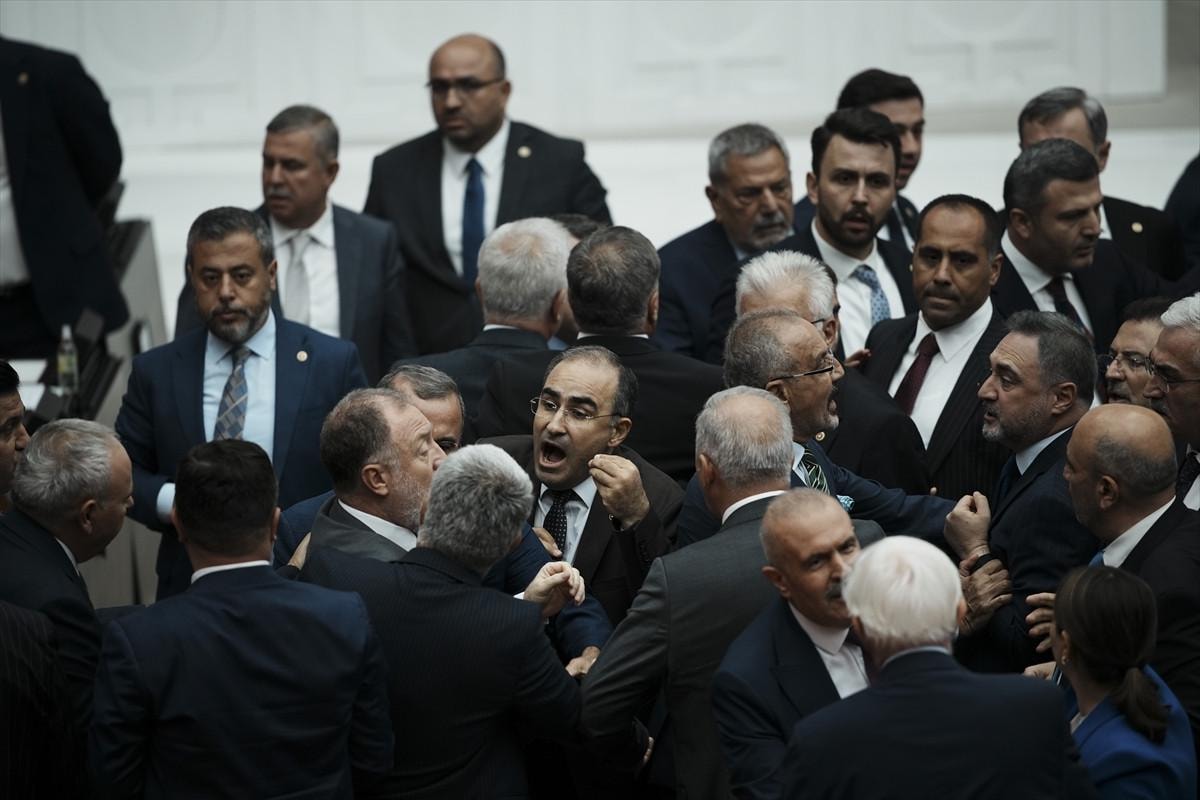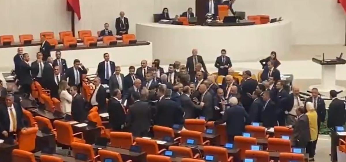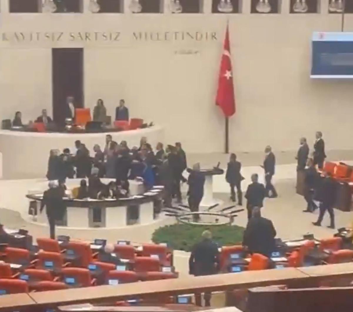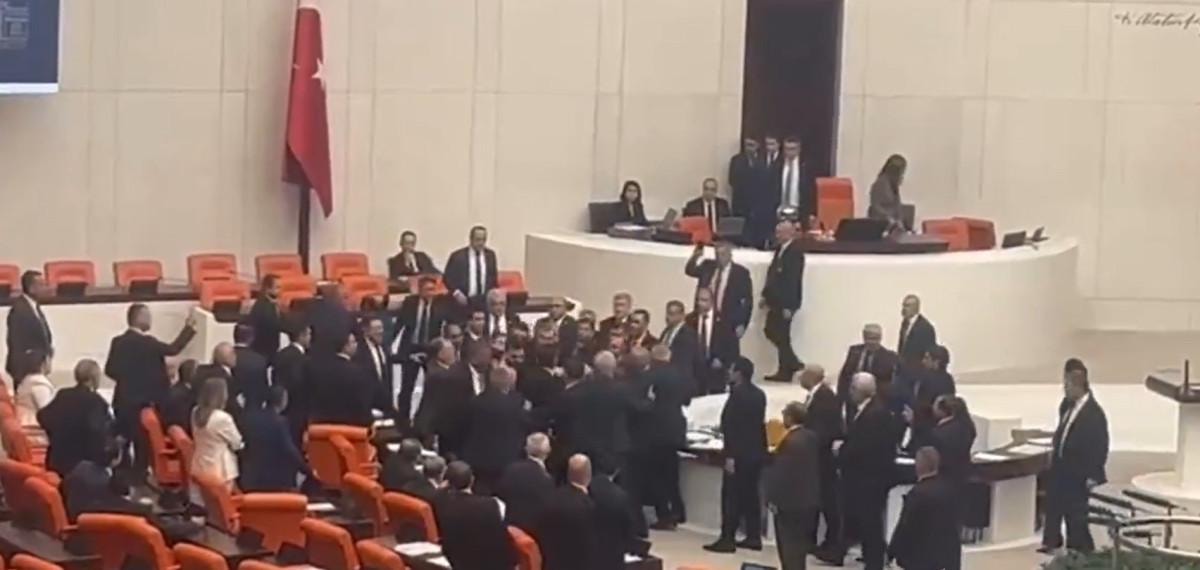 Dem Parti Milletvekili Bozan'ın hakaretlerinin ardından tansiyonun yükseldiği salonda milletvekilleri arasında yumruk yumruğa kavga çıktı.