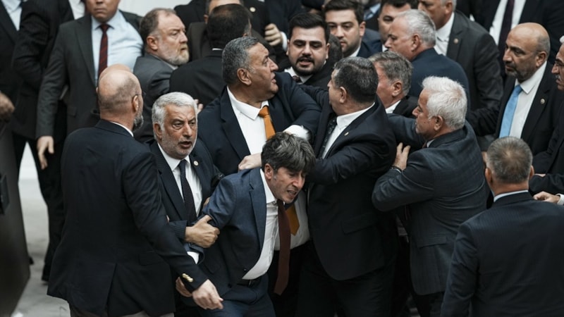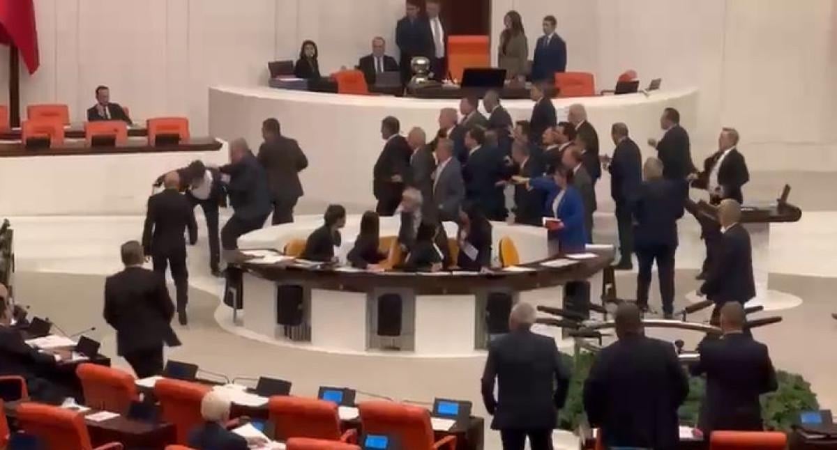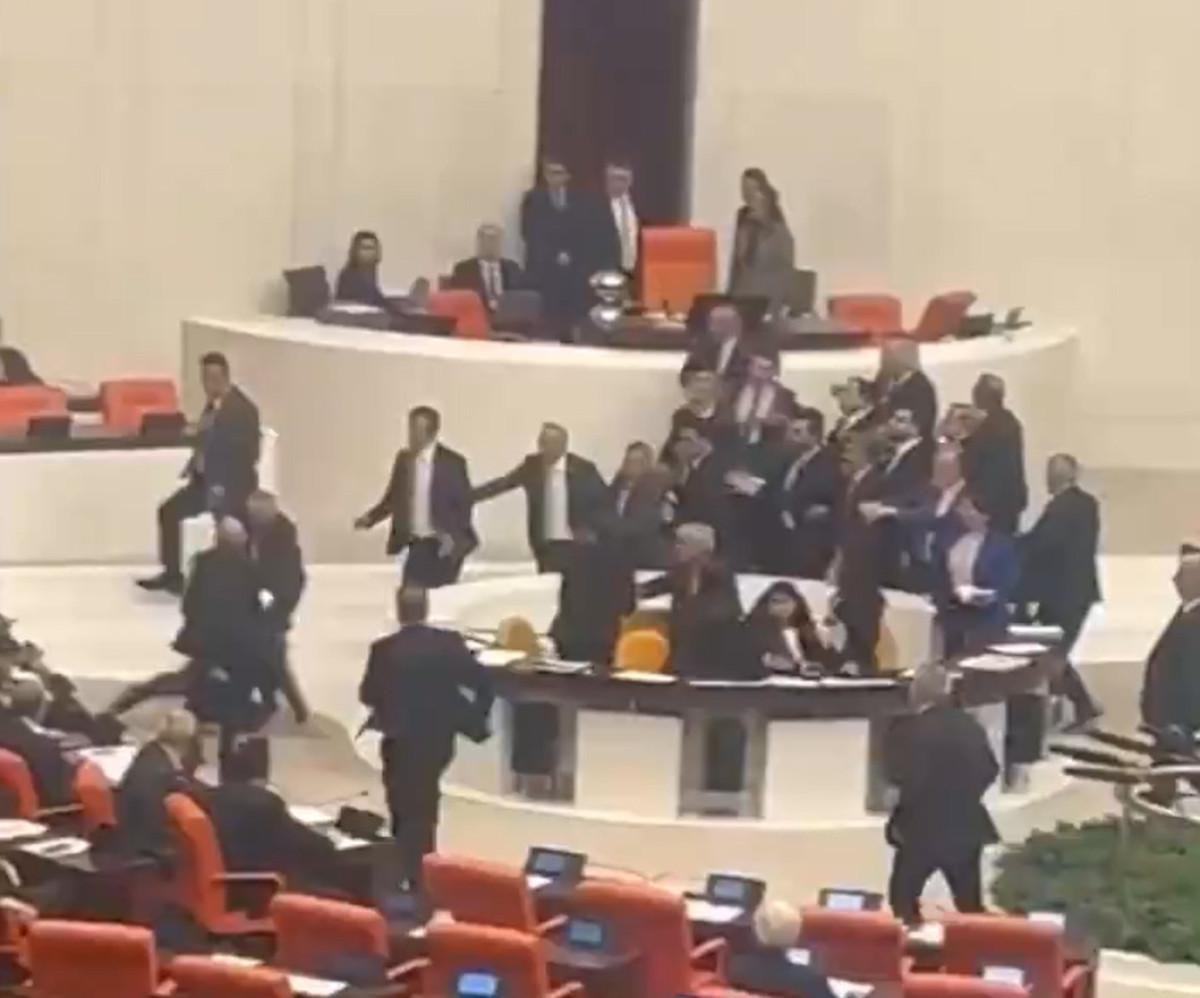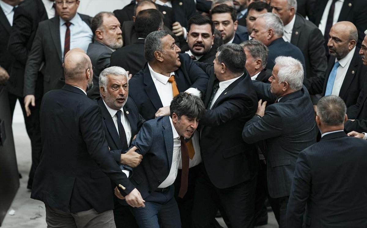 Dem Parti Milletvekili Bozan'ın hakaretlerinin ardından tansiyonun yükseldiği salonda milletvekilleri arasında yumruk yumruğa kavga çıktı.