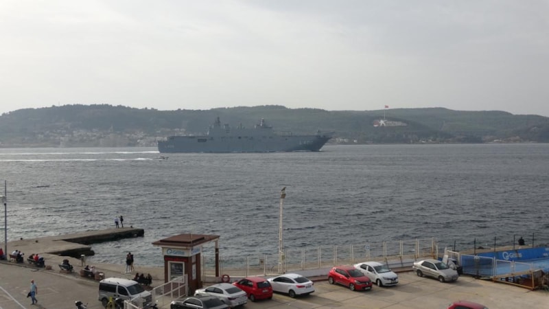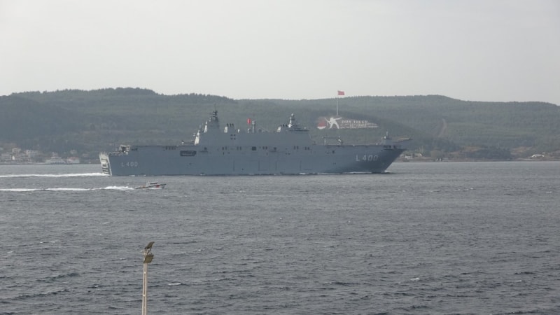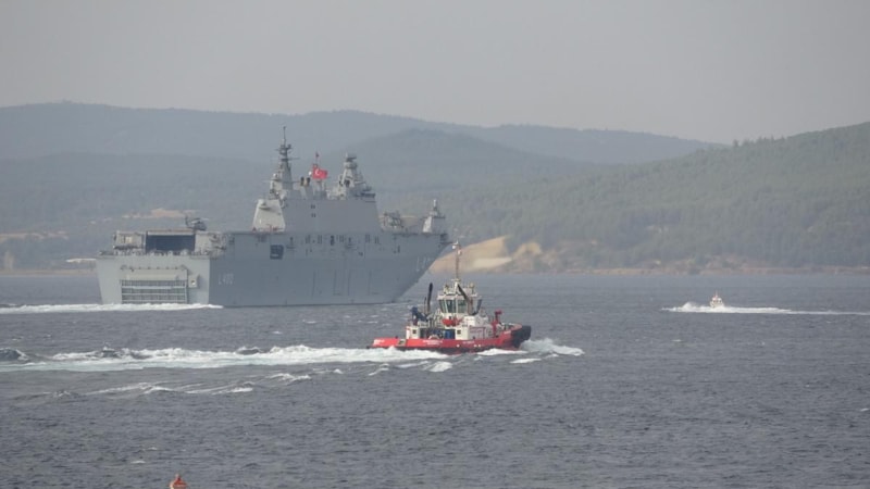 Dünyanın ilk silahlı insansız hava aracı (SİHA) gemisi "TCG Anadolu", İstanbul'a gelmek üzere Çanakkale Boğazı’ndan "Dur Yolcu" yazısını selamlayarak ilerledi.