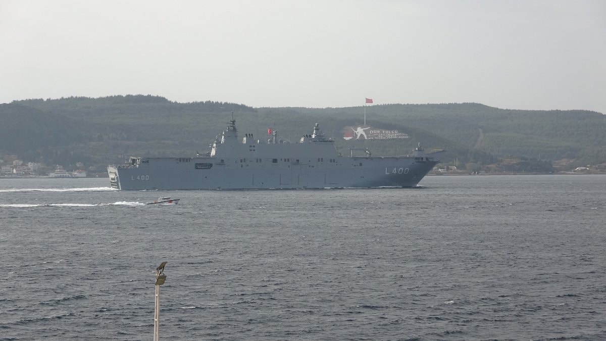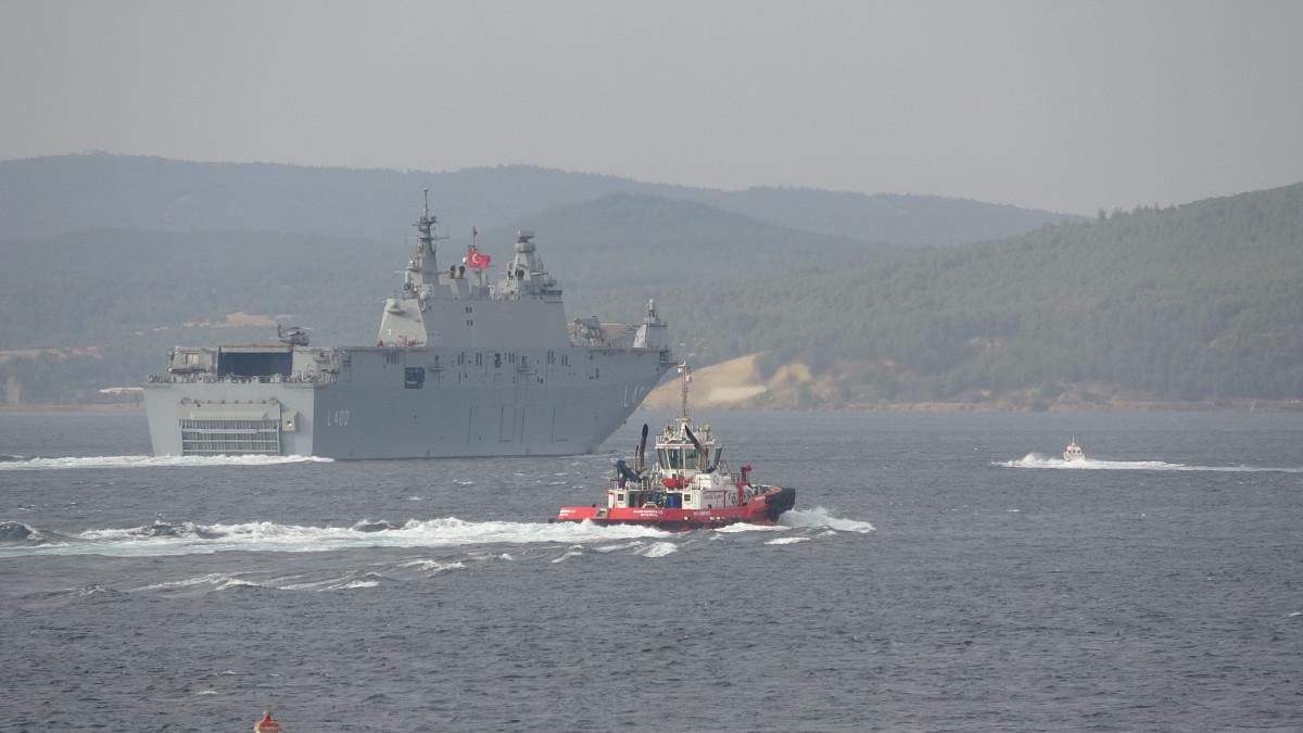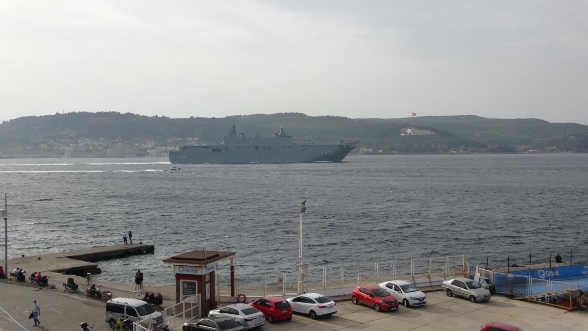 Ege Denizi’nden saat 15.00 sıralarında Çanakkale Boğazı’na giriş yapan dünyanın ilk silahlı insansız hava aracı (SİHA) gemisi TCG Anadolu, saat 16.10 sıralarında Çanakkale önlerinde oldu.
