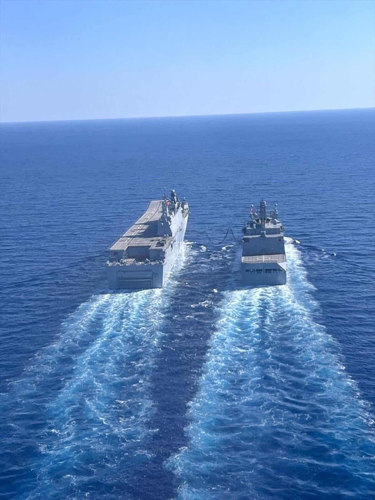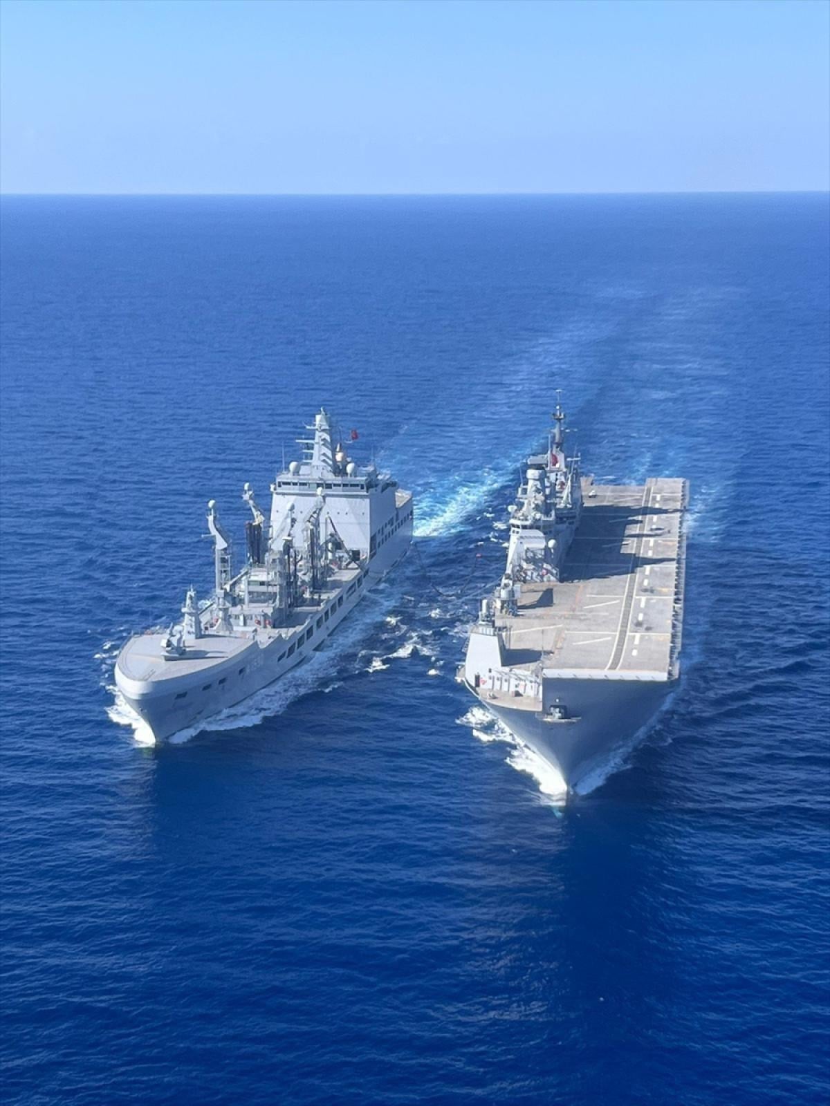 Milli Savunma Bakanlığı, TCG Anadolu çok maksatlı amfibi gemisi ile TCG Derya denizde ikmal muharebe destek gemisinin, ilk defa "denizde akaryakıt ve katı yük ikmali" gerçekleştirdiğini bildirdi.