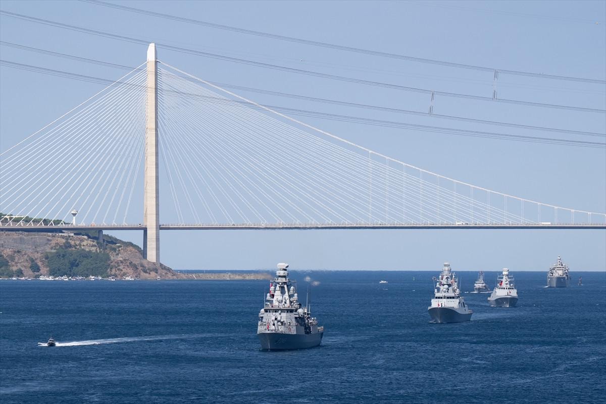 İstanbul Boğazı'nda Türk donanmasının seçkin platformlarının katılacağı görkemli geçit töreni başladı.