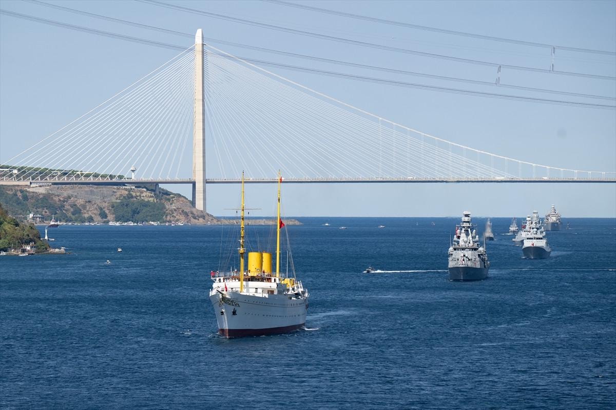Milli Savunma Bakanlığı'nın ev sahipliğindeki etkinlik için TCG Anadolu, saat 14.45 sıralarında Karadeniz açıklarından İstanbul Boğazı'na ulaştı.