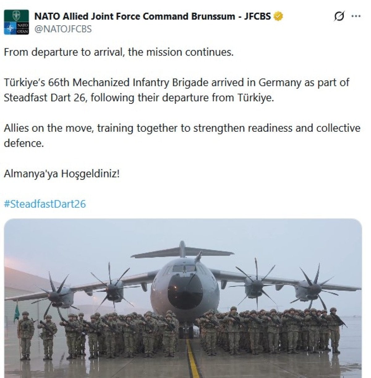 Türkiye’nin 66’ncı Mekanize Piyade Tugayı, Türkiye’den intikalinin ardından Steadfast Dart 26 kapsamında Almanya’ya ulaştı.
