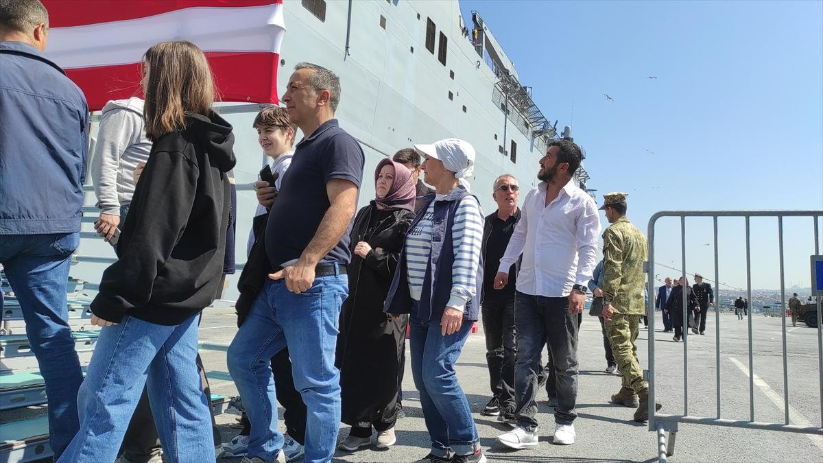 Vatandaşların yoğun ilgi gösterdiği gemiyi ziyarete gelenler gruplar halinde içeri alındı.Gemiyi gezen vatandaşlar, askeri araçları inceledi, SİHA ve helikopterlerin bulunduğu güverteye çıktı.