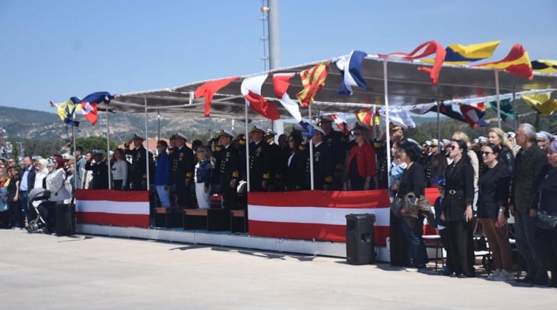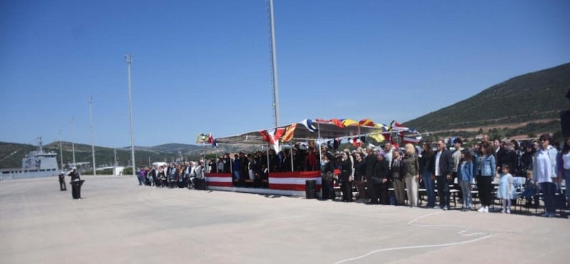 TCG Kınalıada korvetini uğurlamak amacıyla seyir öncesinde İzmir Foça Deniz Üs Komutanlığı'nda gerçekleştirilen törene Güney Deniz Saha Komutanı Tümamiral Yalçın Payal, Amfibi Görev Grup Komutanı Tuğamiral Serhat Sözbir, Amfibi Deniz Piyade Tugay Komutanı Tuğamiral İbrahim Özdoğan, Batı Görev Grup Komutanı Tuğamiral Koray Vural ve TCG Kınalıada personelinin aileleri katıldı.
