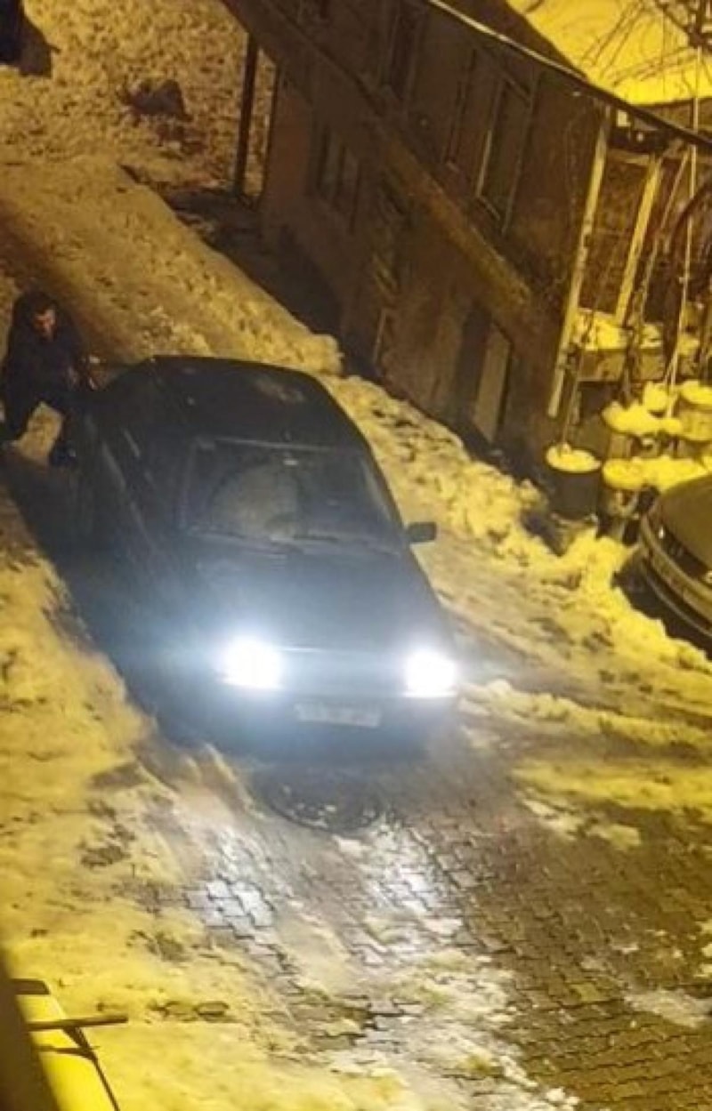 Kayan araçların zorlu mücadelesi anbean kameralara yansırken, zaman zaman iteklenmeye çalışılan araçlar metrelerce kaydı.