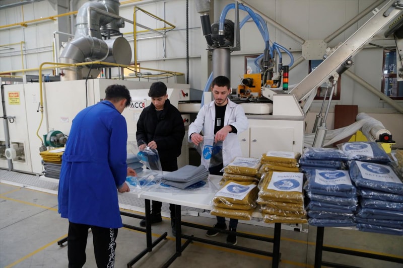Lise öğrencileri, günde 200 battaniye, 250 çorap, 500 atkı üretimi gerçekleştiriyor. Uyku tulumu için de harekete geçilecek.