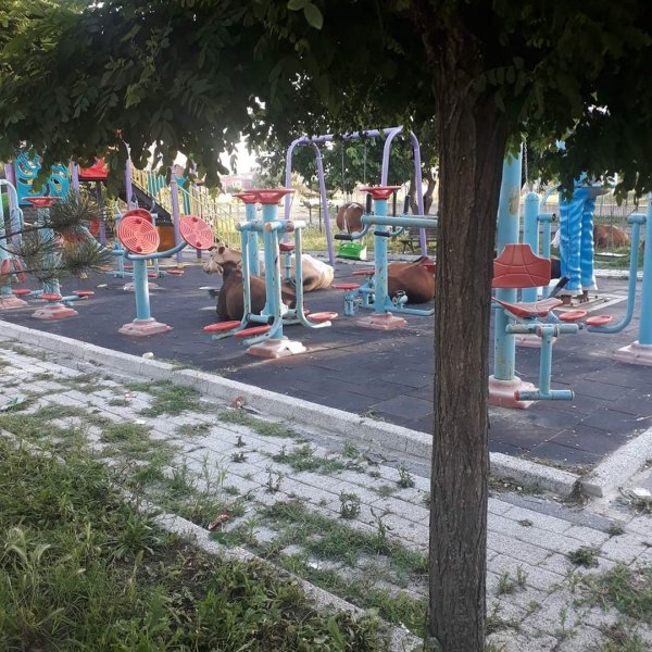 Akıllara durgunluk veren olay, Tekirdağ'ın Kapaklı ilçesinde meydana geldi. Bir süredir bakım görmeyen parkı mesken tutan hayvan besicileri, büyükbaş hayvanlarını otlatmak ve dinlendirmek için çocuk parkına getirdi.