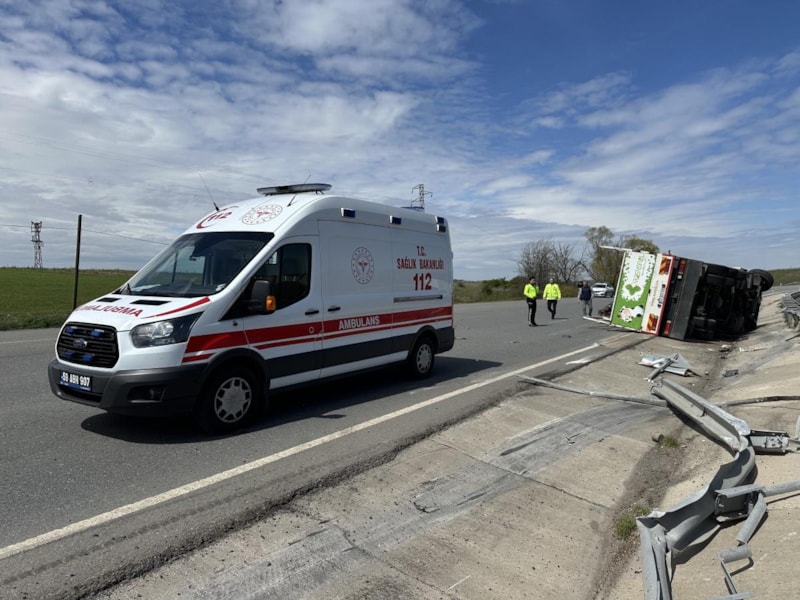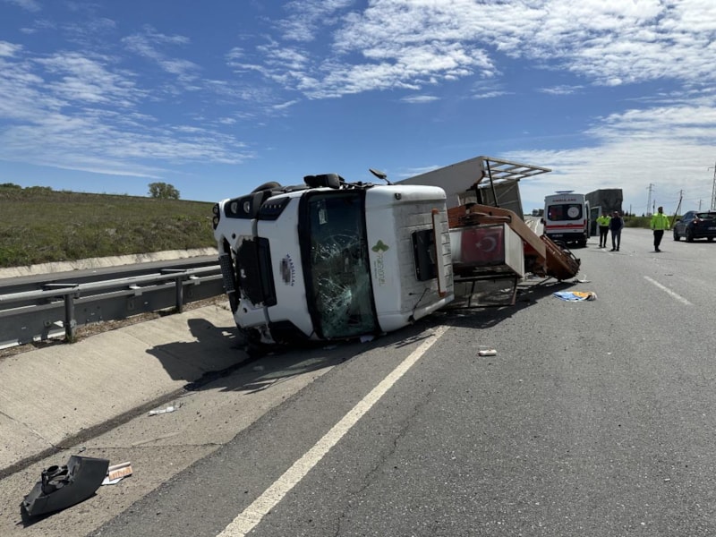Muratlı ilçesinde seyir halindeki bir kamyon, sürücüsünün direksiyon kontrolünü kaybetmesi sonucu refüje çarptıktan sonra devrildi. Kazada kamyon sürücüsü yaralandı.