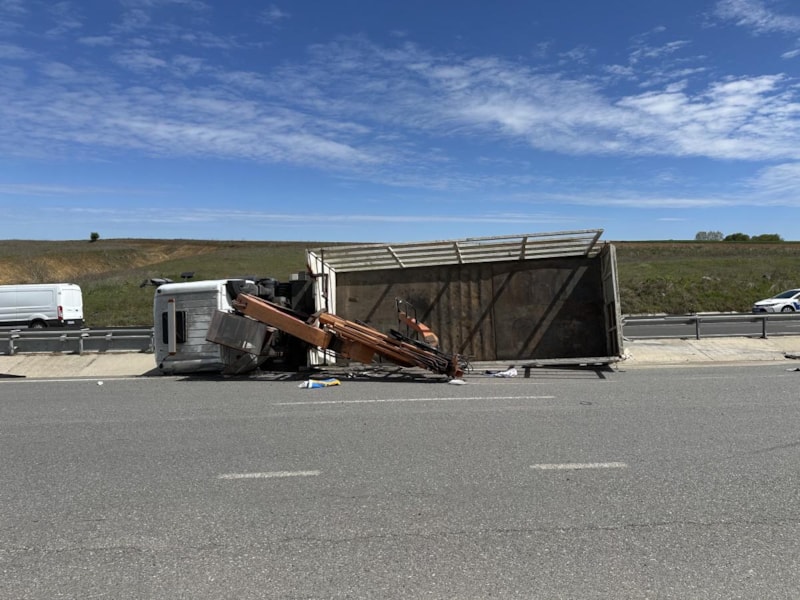 Devrilen kamyon nedeniyle bir süreliğine aksayan trafik, kontrollü şekilde diğer şeritlerden verildi.