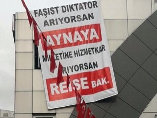 Pankartta, "Faşist diktatör arıyorsan aynaya, milletine hizmetkar arıyorsan reise bak." ifadelerine yer verildi.