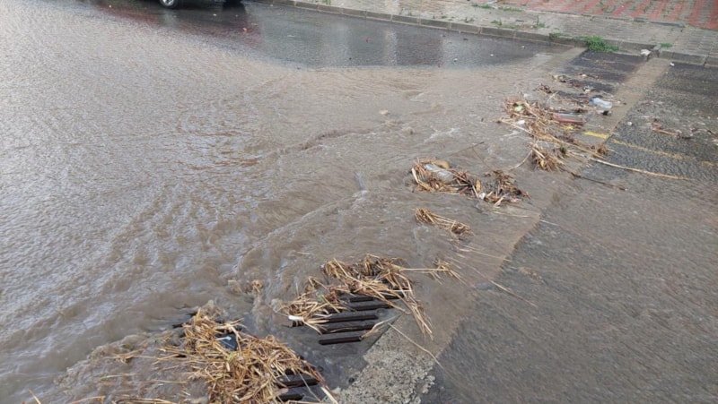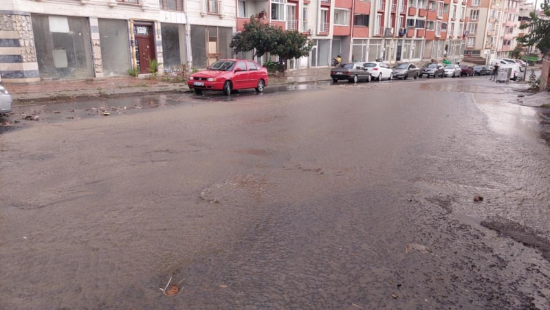 Dereye dönüşen sokaklar, sürücülere zor anlar yaşatırken, mazgallar çöplerle tıkandı.