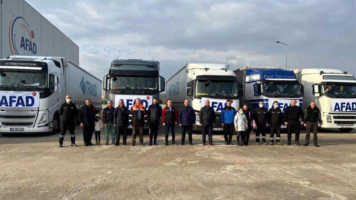 Tekirdağ'da AFAD tarafından hazırlanan ve içlerinde insani yardım malzemesi bulunan 5 tır gönderildi.
