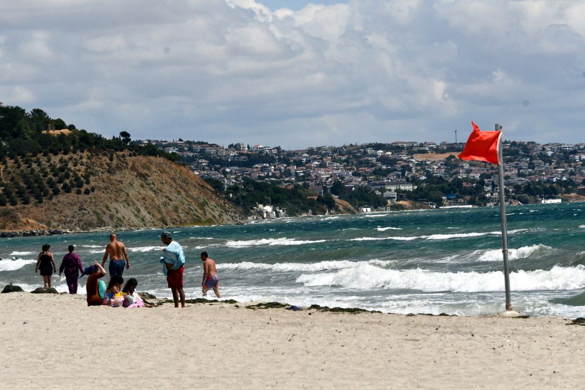 Plajlardaki görevliler, bayrakları kırmızıya çevirerek vatandaşların denize girmelerine müsaade etmiyor.