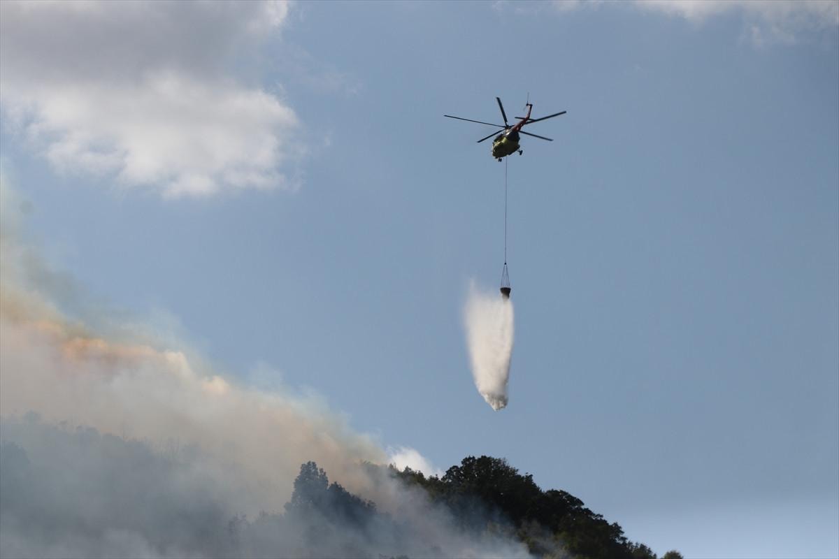 Söndürme çalışmalarına 3 helikopter, 2 söndürme uçağı da havadan destek verdi.