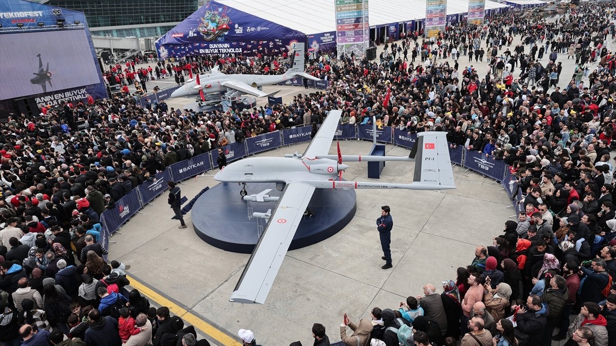 Festival kapsamında ilk kez sergilenen, kısa pistli gemilerden kalkış ve iniş kabiliyetine sahip Bayraktar TB3 SİHA, vatandaşlarda yoğun ilgi gördü.