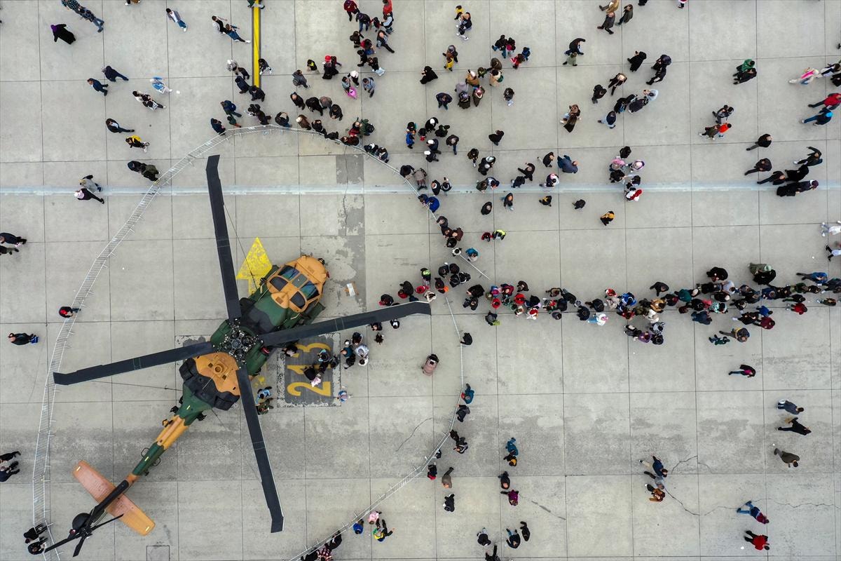 Katlanabilen kanat yapısıyla helikopter gemileri ve uçak gemilerinde kullanıma uygun olarak tasarlanan hava aracına ziyaretlerin tüm gün sürdüğü görüldü.